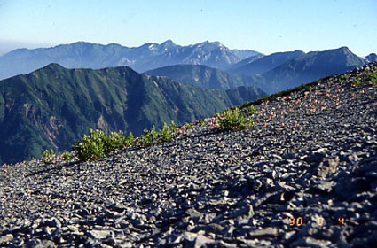 96夏は天気に恵まれ、4つの山に登った。7月28日(日)菅沼から日光白根山へ。320名の高校生と一緒に、奥白根山頂上(2578m、百名山)へ。女学生の「超……ってな感じ」なる会話がまだ耳奥に残っている。8月3日(土)奥秩父連峰の朝日岳(2579m)へ。金峰山(百名山)の前山です。金峰頂上に大きな五丈岩が見えた。五丈岩に登ったが降りられなくなった話がある。