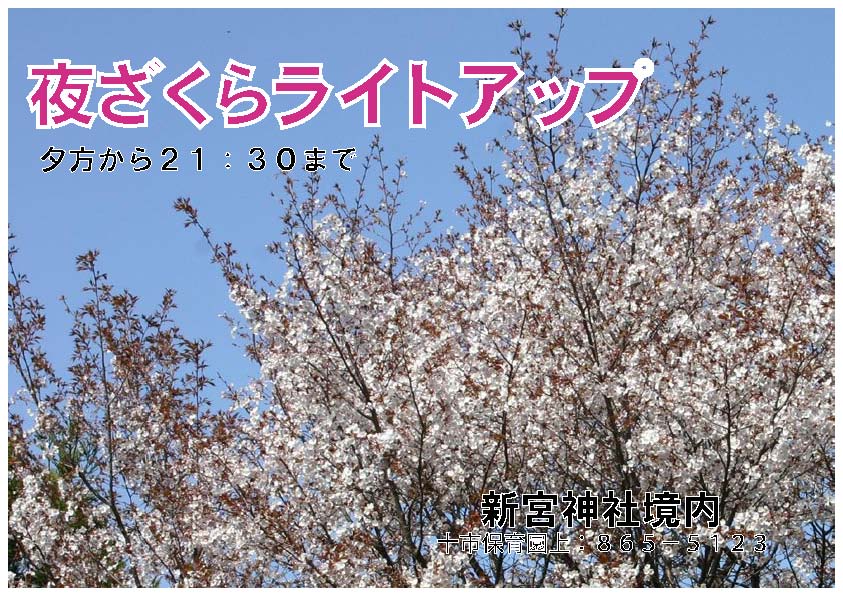 十市・新宮神社の「夜さくら」ライトアップ開始