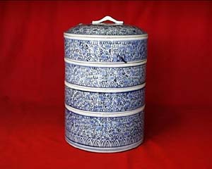 商品番号:IX90521 品名:染付みじん唐草段重 産地:伊万里 時代:江戸