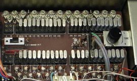 AC100Vの電源を内蔵しており、重いトランスが印象的です。トランジスタ4個の回路ですが、基板上のコンデンサ3個のみ交換しました。ブリッジ出力のブロックコンデンサ3300uFは、固定バンドでネジ止めされており、同一径のコンデンサの手持ちがありません。