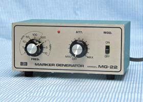 BCLがブームになった時代の製品と記憶しています。ラジオは周波数をデジタル表示する製品がほとんど無く、ナショナルのクーガやソニーのスカイセンサーはダイヤル目盛りでおおよその推定をしていました。マーカーは10種類の発振信号を切り替えます。例えば100KHzにセットすると100KHz毎に、1MHzなら1MHz毎に発振信号が出力されます。
