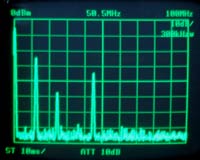 途中の増幅部のスペクトルを観察しながらコイル・トリマを調整した結果が右の写真です。