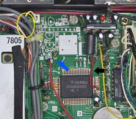 レギュレータの7805を交換しようとハンダを除去しても抜けません。スルーホール穴が小さすぎるようです。止むを得ず無理やり引き抜いたので、スルーホールが壊れました。交換後、裏面に追加配線し、しのぎました。