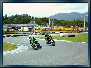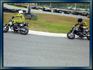 写真右は管理人です。1コーナーへの進入、苦手の右。寝かしこみが足りない。