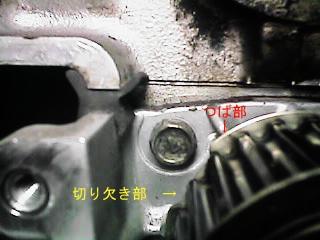 、取り付けボルトを外す時に、ソケットレンチが真っ直ぐに入るようにオイルポンプのスプロケット部の鍔の部分が切り欠