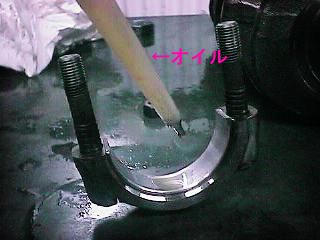 コンロッドキャップにメタルをセットしてから初期潤滑のためにオイルをたっぷりと塗布して組み付けます。