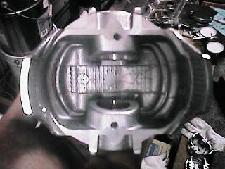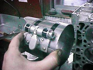 セットされた状態でピストンのスカート部をシリンダー入れて、ピストンのトップ部分をハンマーの柄で叩いて押し込むだ