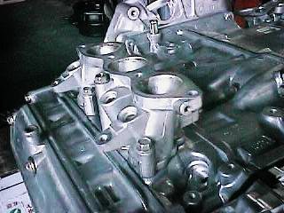 右側画像はシリンダーヘッド側に当たる面ですが黄色で囲んでいる部分の形状は4気筒の形そのままでこういう所にも手を抜