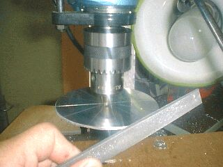 ボール盤や電動ドリルに付けて、ヤスリがけです。