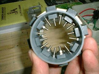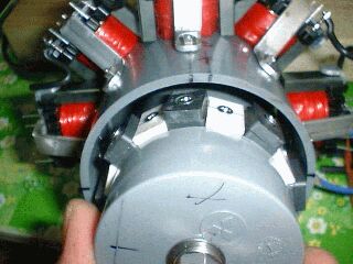 これが、塩ビパイプにコイルを星型に配置した発電機です。