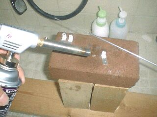 片手にバーナ、片手にアルミ棒を持って適当な温度を見計らって棒を差します。
