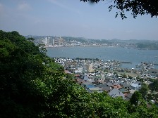 江ノ島(中津宮)から見た東浜方面。 100年ほど前、ここを実篤が泳いでいたのだ。 |