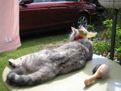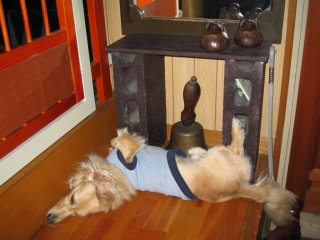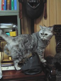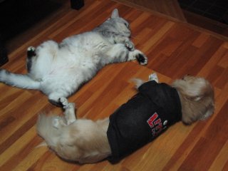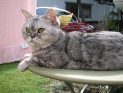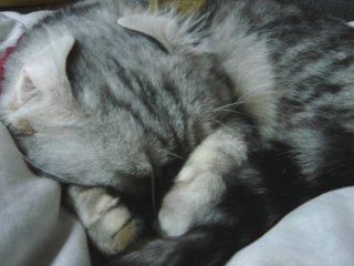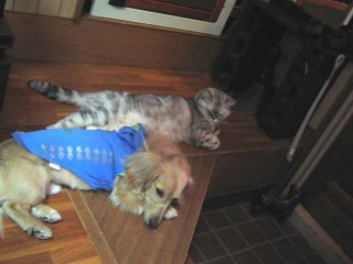 ![]() くつろぎちゅう さてここはどこでしょう。 ![]() それはな、おにいの背中。一番落ち着くねん。 ちびっこの頃からよじよじしてたからな。 ![]() しっぽはだらり。 熟睡もできるねんで。 |