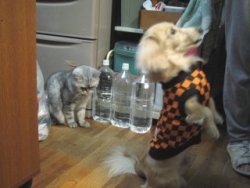 なぁなぁ、それなに?ひょっしてレタス!? ![]() レタスは好物やで知っとるやん なぁーーーーってばぁぁぁー ![]() れぇーたぁーすぅー ちょうらい、ちょうらい、ちょうらい。 なんや、何もらえるん交渉は任したで ![]() れたす・・・・ 答えは梨でした。二人ともありつけず。 どっちも切る音は「しゃくっ」て言うもんなぁ。 ちなみに猫よけのペットボトルはやはし意味がなさそう(笑) えー、りう様 高級ブランド新作バッグの座り心地はいかがすか ![]() はわー 悪ないでぇぇぇぇぇぇ ![]() |