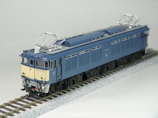 国鉄末期のEF64です。ひかり模型のキットを組みました。写真は1END方です。動力はMPギアによる一般的な方式です。ウェイトもエンドウの機関車用1セットのみのため、あまり牽引力は期待できません。 |