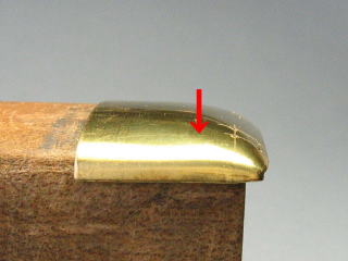 ヤスリ掛けが終わったところです。この後耐水ペーパーで仕上げます。最初は400番位で、仕上げは800番位で良いでしょう。木ぎれ等に巻き付け水を付けながら、必ず前後方向に動かします。妻面のR部分等は指先に耐水ペーパーを巻き付け磨きますが、くれぐれもリベットを削らないように。 |