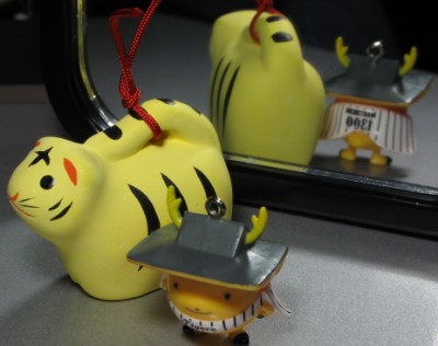 干支の寅をかたどった小さな土鈴と、新しい破魔矢を頂いてきました。