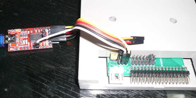 FDDエミュレータのピン配置は「STM32_SerialBridge.zip」添付のテキストを参照のこと。また、USB-TTL変換機についてはマニュアルもしくは基板上のシルク表示を参照のこと。