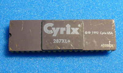 CX82S87は米 Cyrixの x86系 16ビット CPU 80286用のコプロセッサで Intel製の 80287の互換品。コア部分が高くなったセラミックパッケージが特徴。この頃は、Intelの他に AMD等の半導体メーカーもライセンス契約を結び、同一のものを生産していた。 80287登場の当初、Intelの他に AMD等の半導体メーカーもライセンス契約を結び同一のものを生産していたが、時間の経過と共に各メーカーが横並びからの抜け駆けを始め勝手に改良して、Intelの製品よりも高性能なクローン製品を作るような動きを見せるようになってきた。 最たる製品が後に国内で CPUアクセラレータブームを巻き起こす米 Cyrixの CX82S87や、IIT (Integrated Information Technology) の 2C87が挙げられる。これらの製品は内部で各社独自の高速化が行われていて本家の 80287よりも数段演算処理能力が高い製品で且つ低省電力で発熱が少ない事も有って、動作クロックも Intelのラインナップに無い 20MHzの高クロックで動作する製品があった。 それ故に Cyrixでは「FasMath」という愛称を付けて販売した。287XL+はヨーロッパ向け製品の名称でコアは同一。 実際に PC-9801UX21 (80286 10MHz) に本コプロセッサ (注: 8MHz動作) を搭載して I-O DATAのベンチマークソフト「CPUCHK Ver1.24」でテストすると PC-9801VX 10MHzの 80287を 1とした数値と比較して、Intel 80287では 0.82倍であったのに対し Cyrix 287XL+では 3.63倍となった。この数値は PC-9801DA 20MHzの 80387に匹敵する高い数値である。一ベンチマークの結果なので結果をそのまま鵜呑みにできないとしても Intel製品に比べて大きなアドバンテージを持つのは間違いない。 コプロセッサとは、数値データプロセッサともいい CPUと協調して動作し、関数演算等の浮動小数点演算の処理を専門に担当することで結果として演算処理が高速化される。第三世代までは外付けのオプションで有ったが、第四世代の i486DXや i486DX2以降の CPUでは、浮動小数点演算ユニット (FPU) として内蔵される事が一般化している。 80286用コプロセッサとしてはかなりの性能を秘めているが当時は日本国内での販売は無かったため入手する事は非常に難しい。 |