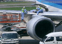 写真はエンジンを調べている作業員。手突っ込んでるんだよなあ、なんか落としたのかな。犬かなんか引っ張り出してきたら驚くなあ。