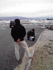 ↓K社長はお忙しい人で空港に着くなり、近くの空き地で仕事の打ち合わせ。