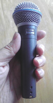 ↓写真は購入したシュアーのボーカルマイク、BETA58A。私の歌は軽いがマイクはずっしり重い。