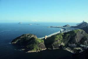 西の彼方のへんてこ岩の先には、まぶしいビーチ! あれが、