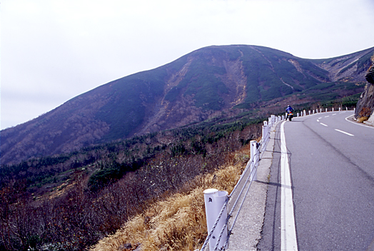 スキー場を何度か横切りながら急斜面を一気にのぼる。