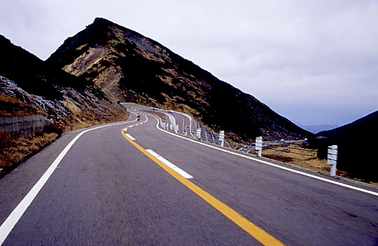 いよいよ乗鞍スカイラインを走る。つづら折りのくだり坂だ。