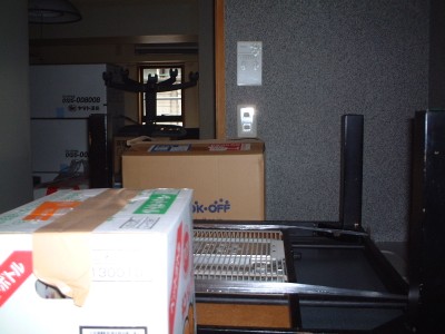 本の入った箱は、ちゃんと本棚の前に積まれていました。こういうところは親切ですね。
