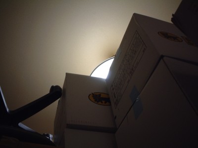 一生懸命荷物を整理する一方で、空いた隙間に新たな荷物を運び込む引越業者。私がかたづけるのを待っていられないのもわかりますが、私の周りに荷物を積み上げ、「荷物が入りましたので、これで失礼します」はつれないお言葉。気持ちは「一緒に片づけてよ〜」ですが、こればっかりは人に頼むこともできません。段ボールの隙間から、搬入終了の書類にサインをすると、早々に帰ってしまいました。