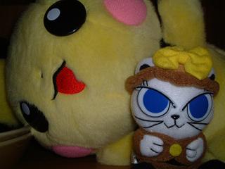 リボンと色がおそろいの、黄色いネズミとツーショット