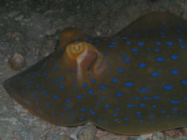 エイの仲間は尾に毒棘を持つ者が多いので注意!アカエイ・ヒラタエイ・ツバクロエイなど トビエイ・マダラトビエイは尾の付け根のところに棘がある。 |