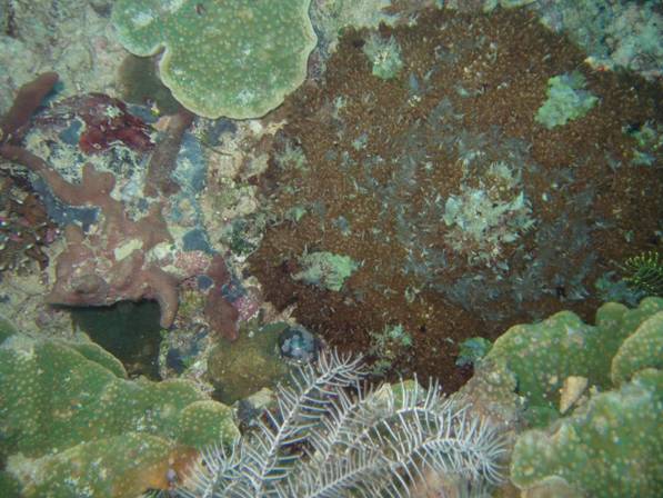 かなり危険な猛毒イソギンチャクで、下記と2種類教わりました。 こちらは夜になると、中央が持ち上がって立体的に成るそうです。 |