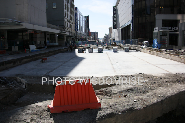 ブロードウエイとの交差点にある、 Broadway-CityHall Station 。2008 6 まだ大きな穴が見えています。