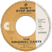 | '73 | Century II 1501 | The Original Caste | Don't Stop Now | 3:28 | Dennis Lambert - Brian Potter | 復活したオリジナル・キャストの第1作は、なんとランバート&ポッター作です。アルバムに先行発売され、アルバムには未収録でした。この時代にも彼らの曲をやってたんですね。きれいなバラードで、結構、好評だったようです。プロデュースはブルースが担当しています。右の写真は、このシングルのプロモーション用チラシです。 | ||