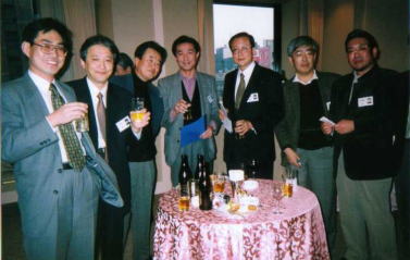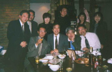 上の記念写真は一次会(第一ホテル東京)でのものです。ちょっと見にくいかもしれませんが、参加者をご紹介します。