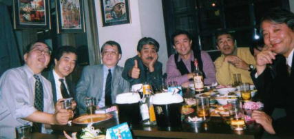 渡辺鉄則氏の発案によるHP1000アクセス競争では、なぜかジャニーズの系グッズの数々が、記念品として立川由美女史に手渡されました。そしてひとりひとりが近況などのスピ−チ、話題が「健康のこと」「子供のこと」「リストラのこと」に集中してしまったのは、やはりこの世代の特徴だといえるかもしれないですね。