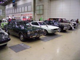 ショップが会場の半分以上を占めていたので、車両の展示は若干さびしいものに感じられました。スカイライン、フェアレディーZ、トヨタ2000GT、その他国産車、外国車という並べ方はいかがなものでしょう?