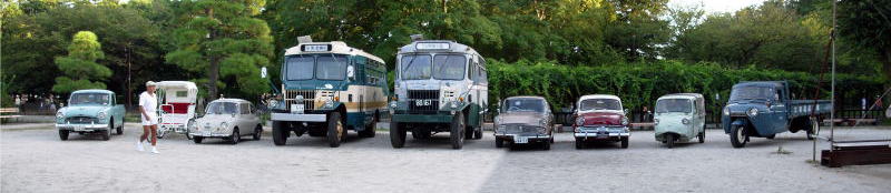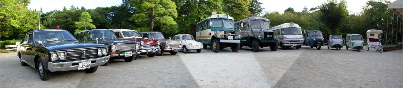 マスターラインピックアップ、マツダT2000(3輪トラック)、コルト1100、マツダK360、ダイハツミゼット、スバル360、日産セドリック、日産シビリアン図書館車が展示されました。