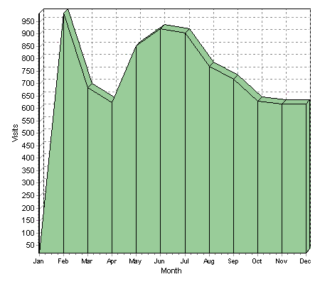 2002年と2003年のアクセス状況を並べてみた。基本的にはあまり変わらない。アクセス数はグラフの起点が違うため(2002年は最小が650、2003年は0)見え方が大きく違っているが、数値的にはそんなに変わっていない。調整方法がわからなかったため、比較しにくいがこのままとする。