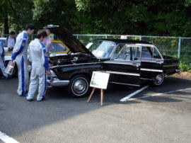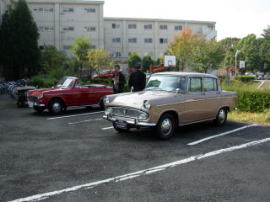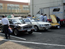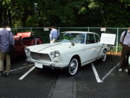 トヨタオールドカークラブ、バックヤードつくばの他にプリンス系3台、コンテッサ、ルパンのフィアット、オート三輪が参加。ヒルマンミンクススーパーデラックスが特別に屋内展示されていました。